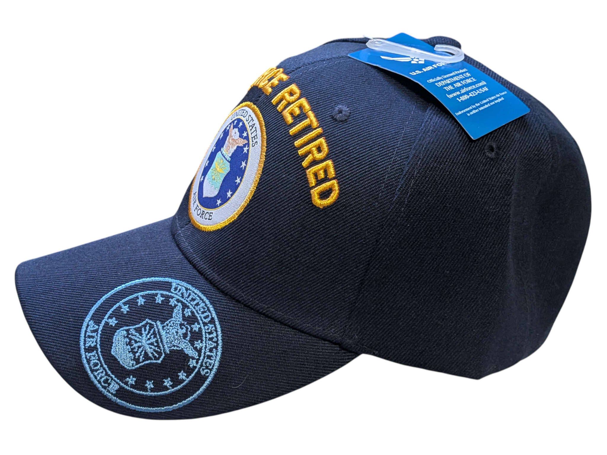US Air Force Retired Emblem Brim Blue Baseball Hat Cap