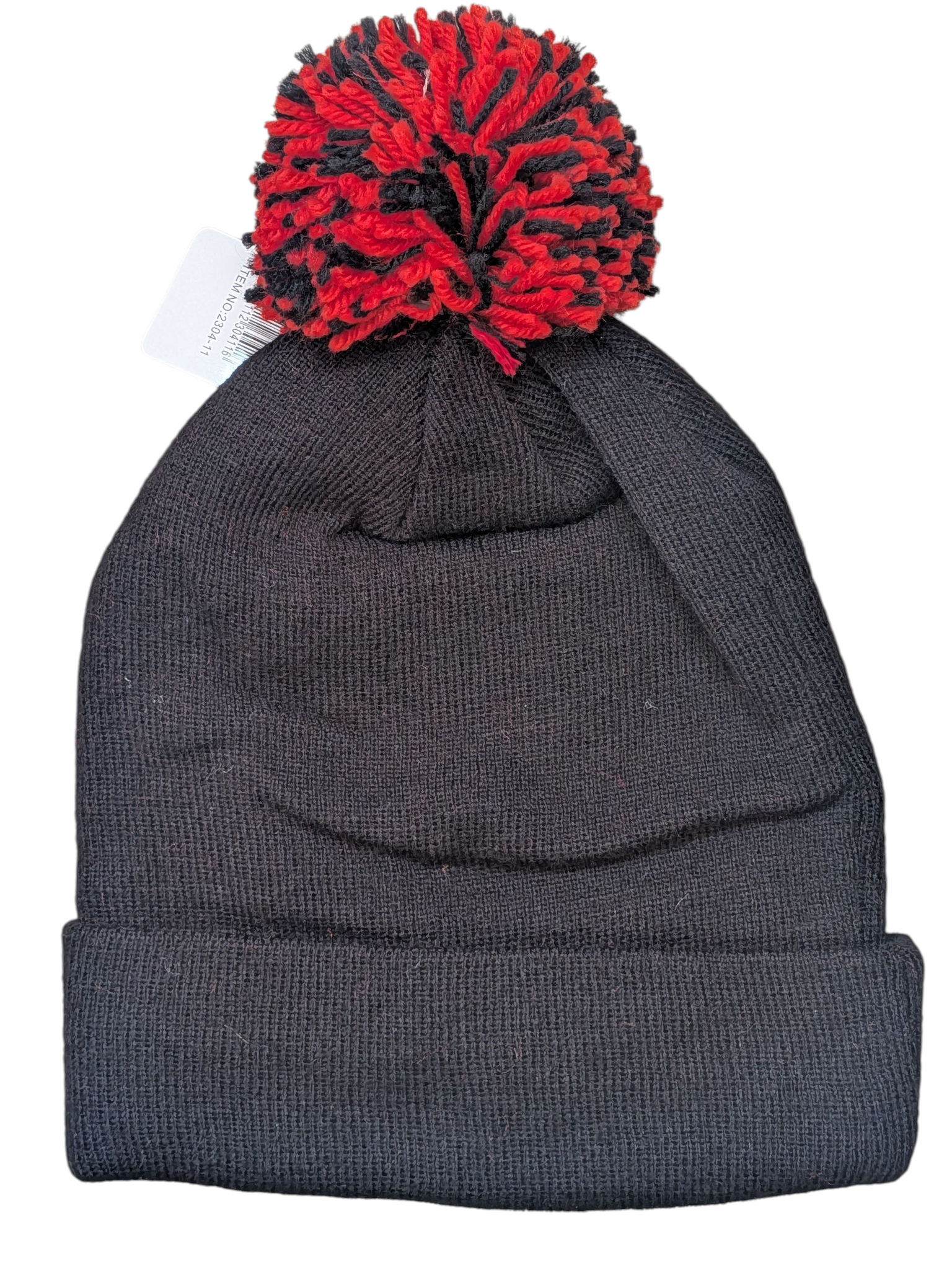 23 Fly Chicago Embroidery Style Black/Red Cuffed Pom Knit Beanie Cap