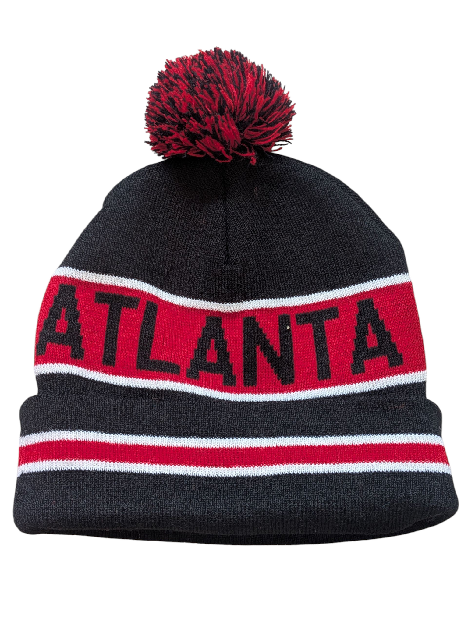 Atlanta City Inline Style Black/Red Pom Beanie Skull Cap